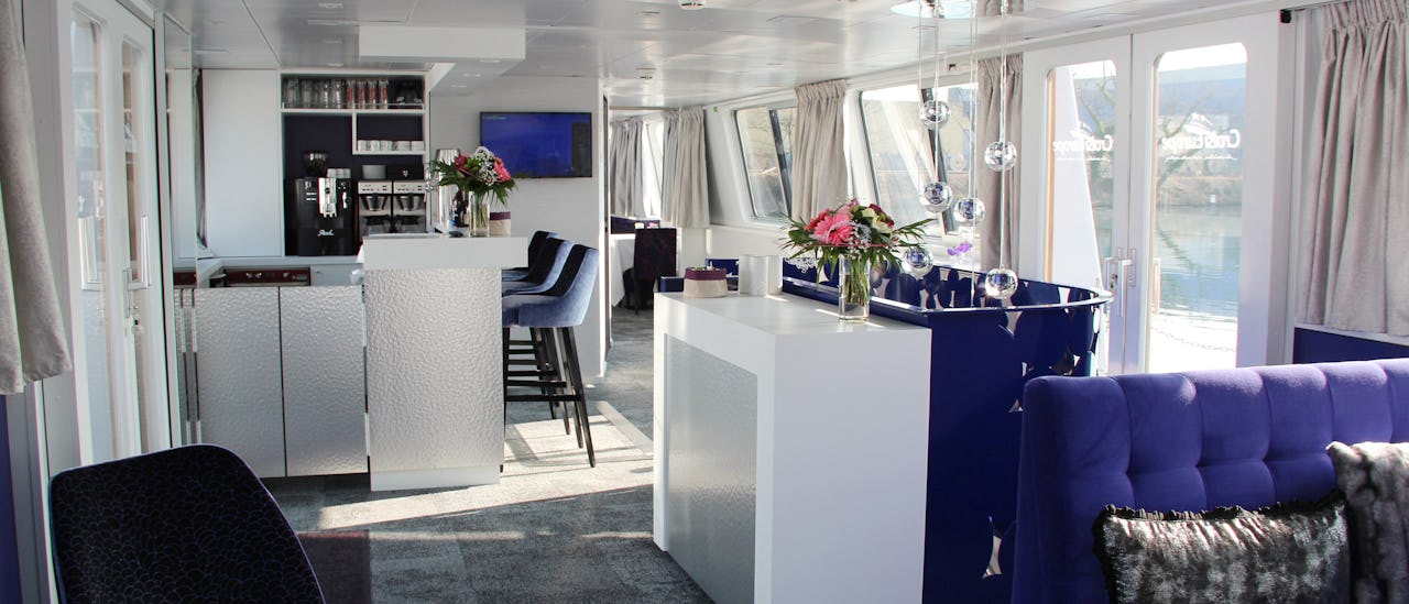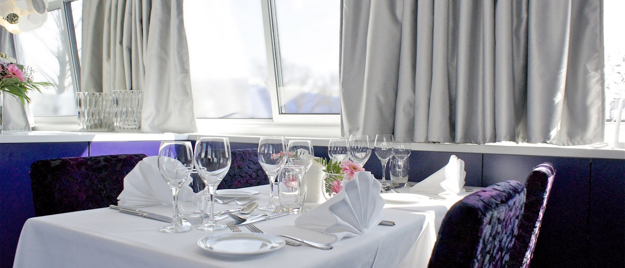 Situated on the main deck, the restaurant is where you'll enjoy all your meals throughout the cruise. It accommodates all guests with tables of varying sizes, offering a panoramic view. The ambiance is both relaxed and refined.