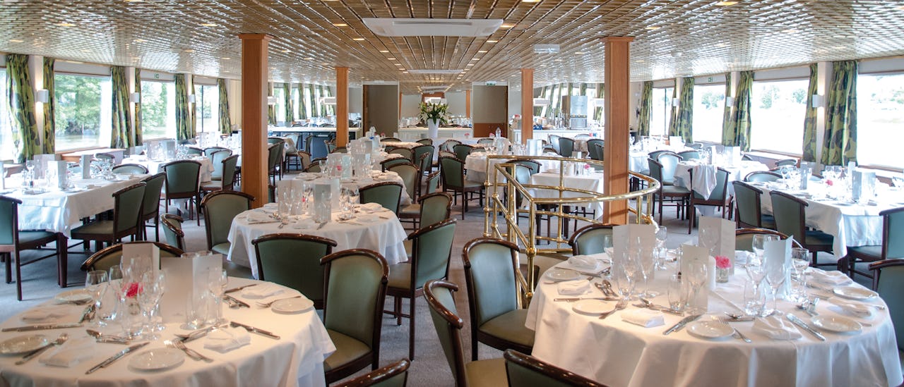 Located on the upper deck, the restaurant is where all meals are served during your cruise. It seats all guests at tables which vary in size with a panoramic view. The atmosphere is casual but elegant.