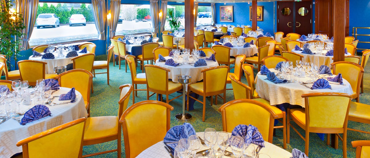Located on the upper deck, the restaurant is where all meals are served during your cruise. It seats all guests at tables which vary in size with a panoramic view. The atmosphere is casual but elegant.
