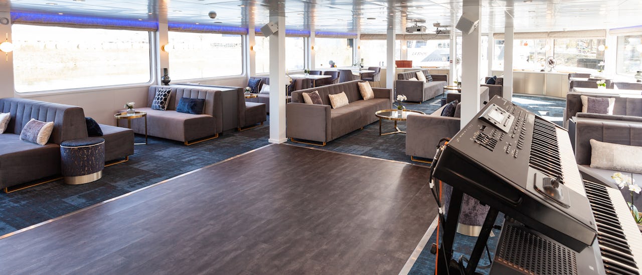 The lounge is tastefully decorated and offers panoramic views. Cocktails and games, dancing, and other forms of entertainment all happen here.