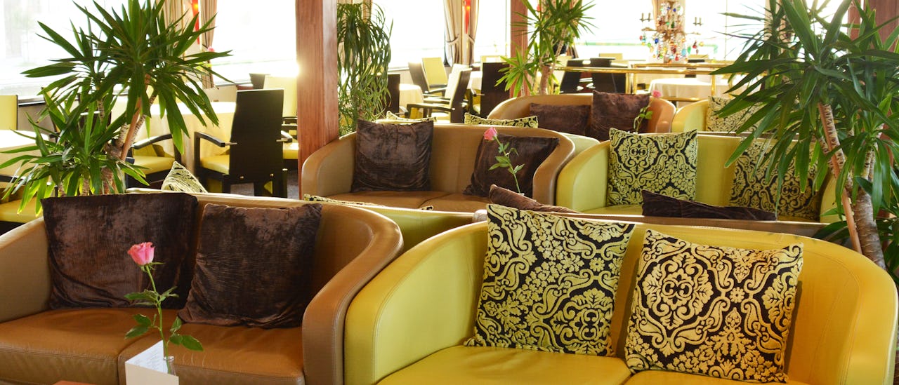 The lounge tastefully decorated, is located at the front of the ship and offers panoramic views. Cocktails and games, dancing, and other forms of entertainment all happen here.