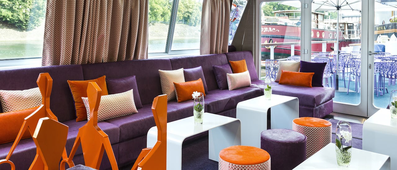 Located at the front of the barge and equipped with tables and parasols, you can easily share a moment with friends while enjoying the view