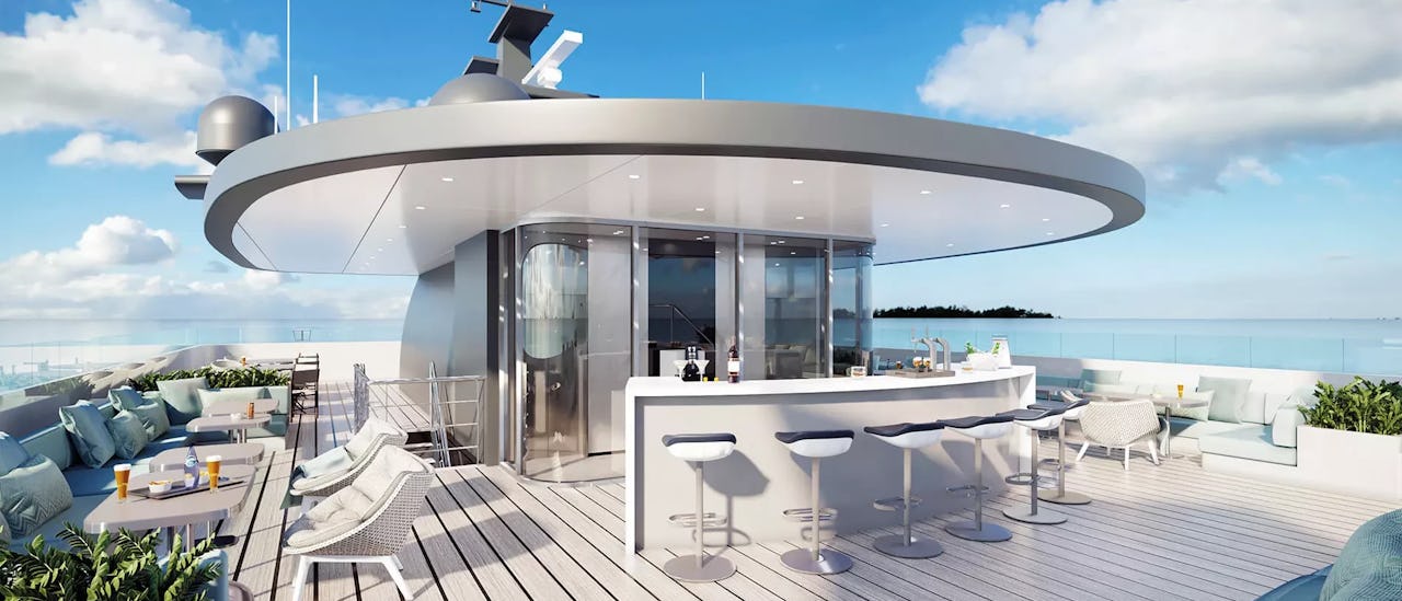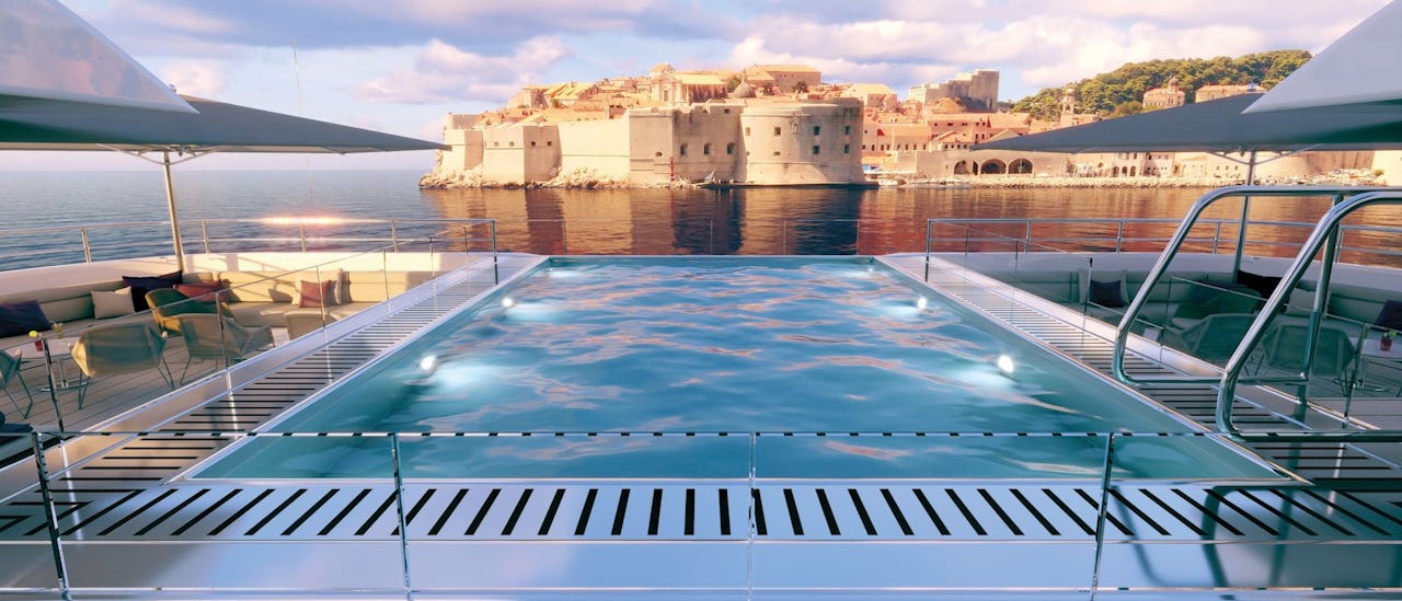Aqua Pool & Café Take a leisurely dip in the pool between light refreshments, with expansive views of the unfolding panoramas located at the aft of the yacht.