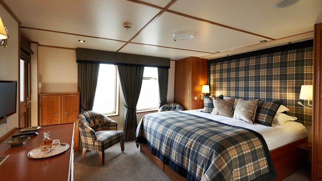 Elegantly decorated and furnished, Hebridean Princess cabins are individually designed to make the most of the available space. Poetically named after Scottish isles, castles, lochs and sounds, they are amongst the most spacious for vessels of her size.