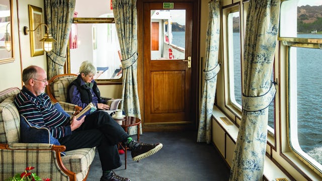 Take in the breath-taking landscapes on the open air boat deck as you sail or visit the promenade deck and relax and take in the scenery on the Skye Deck where you can find the lounges, library and conservatory.