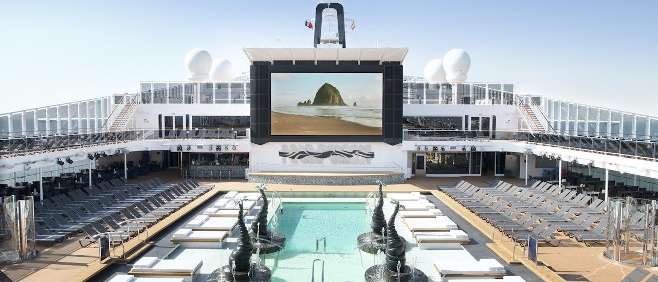 The pool deck is designed in two areas with pools among the largest at sea.