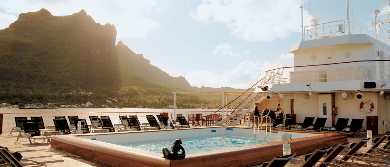 Enjoy freshly caught shellfish and elaborate French gourmet food in 3 restaurants, try water sports at the ship's marina and most of all – explore the islands of French Polynesia. Paul Gauguin is a smaller floating luxury resort offering an unusually high guest to crew ratio with a French flavour.