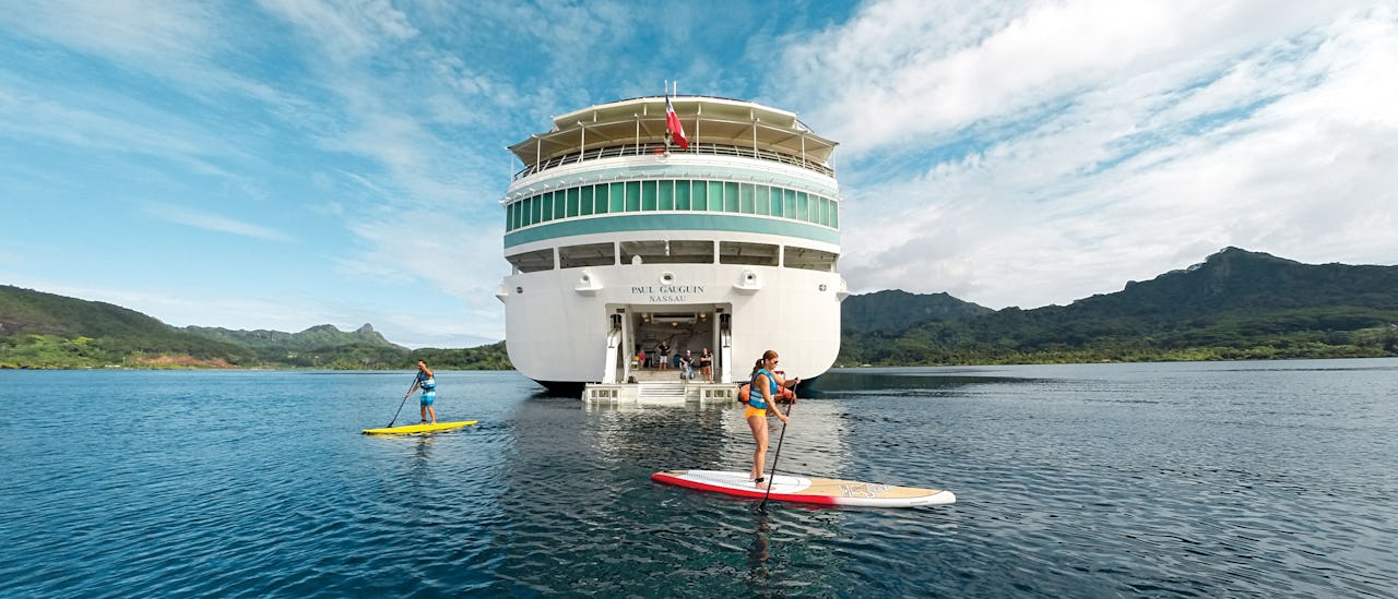 Water activities like stand-up paddling and kayak tours are available at Paul Gauguin's Marina.