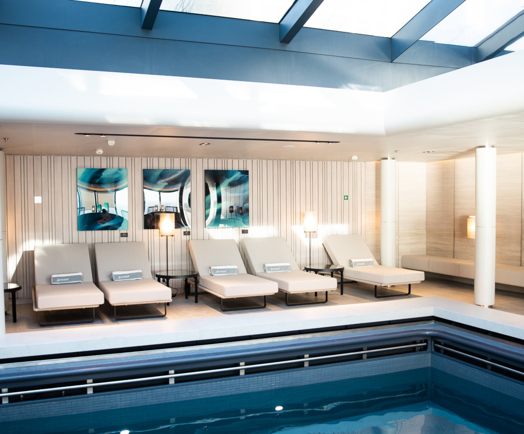 Enjoy comfortable sun loungers, a will equipped fitness center and views from the infinity pool.