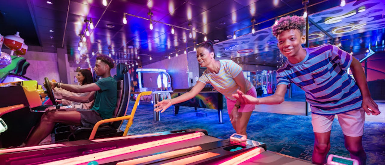 Enjoy a cocktail in The Vue Bar - the bar has a colorful mosaic canopy overhead after sunset