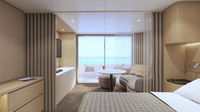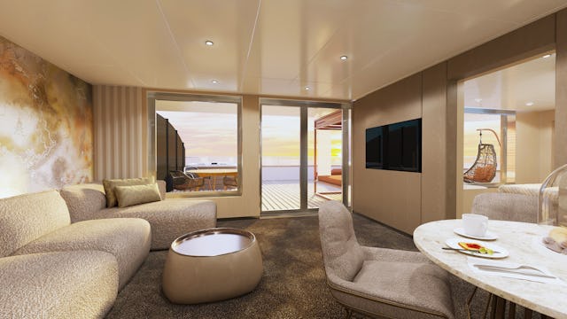 Separate sleep and lounge areas for the ultimate comfort. Enhanced spaces and elevated amenities. Walk-in wardrobes, Glam Bar, and fully appointed all-inclusive Butler Bars with custom tables for private in-suite dining.