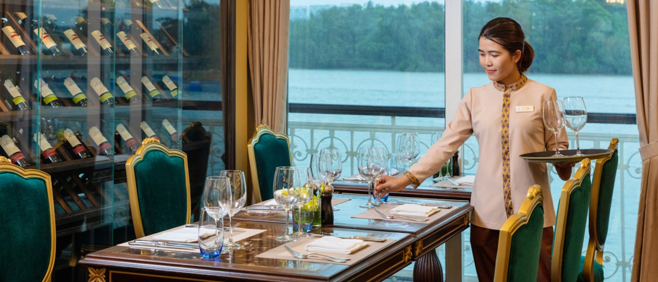 Mekong Jewel - this all-suite super ship includes two dining venues: one main restaurant and an al fresco eatery on the upper deck and are constructed with sustainable and eco-friendly materials.