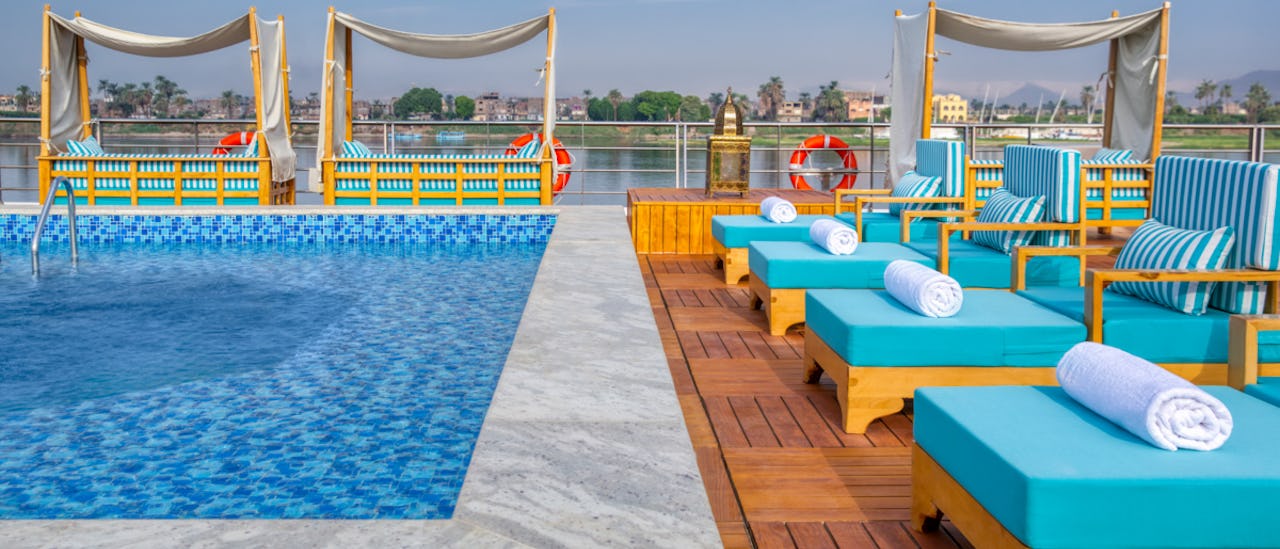 Egyptian artwork, fabrics, and hand-carved furnishings bring the region's beauty to life onboard