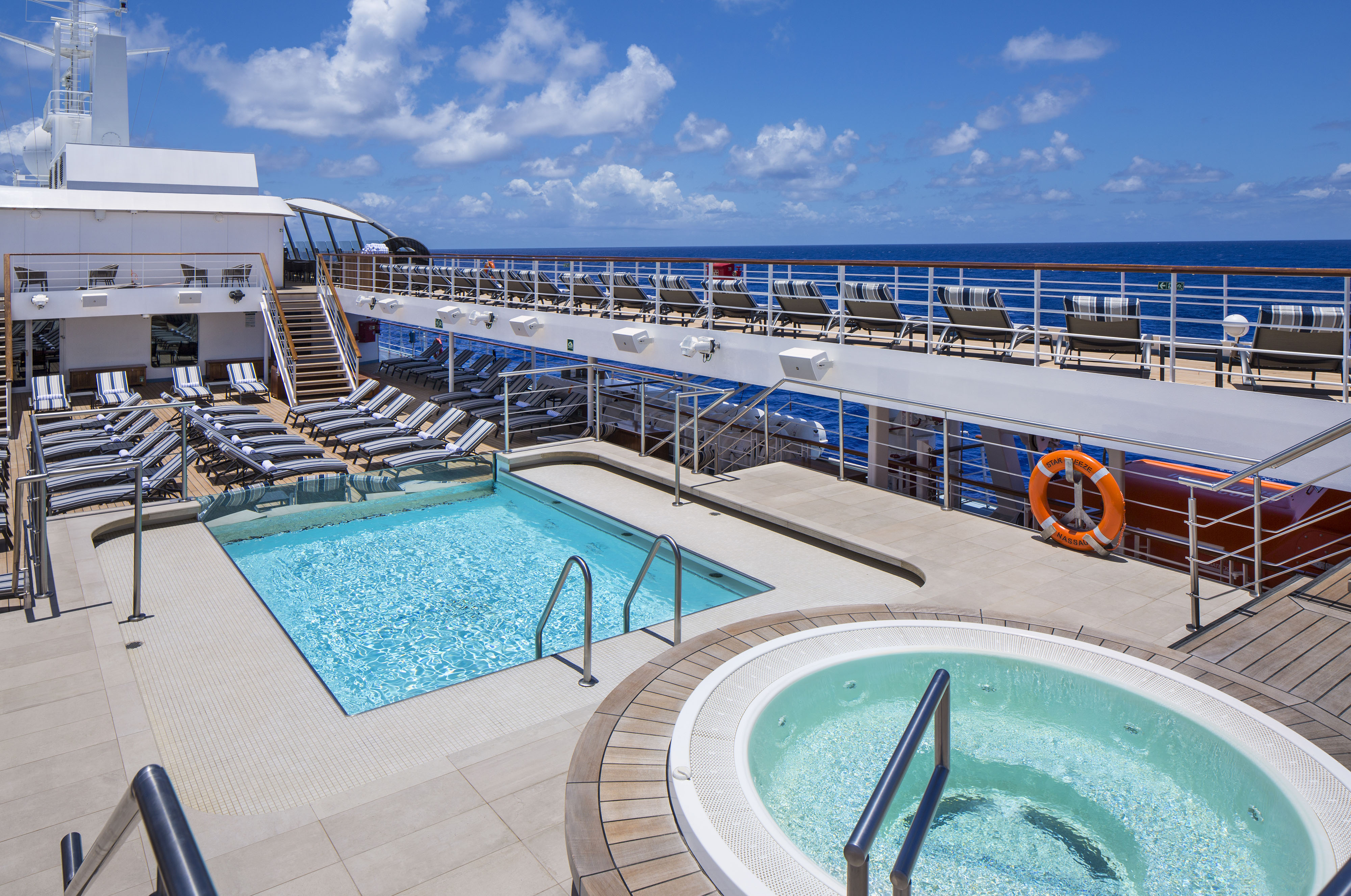 The top deck or deck 8, features a Yacht club, a star bar and a lounge.