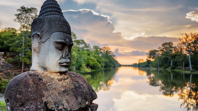 In Angkor Thom, admire the giant smiling faces of the Bayon Temple. Travel to Baphuon, an 11th-century temple mountain, and admire the Terrace of Elephants. In the afternoon, visit Angkor Wat and marvel at its corncob spires.