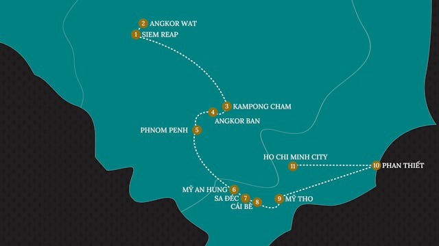 Join the Mekong Navigator in Kampong Cham. As your downstream journey commences, experience cordial five-star hospitality and settle into your luxurious surroundings. In the evening, savour a Cambodian-themed dinner.